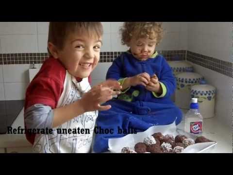 A really easy recipe for Choc balls (truffles) with dates and walnuts by the Cooking in Your Pyjamas Team.